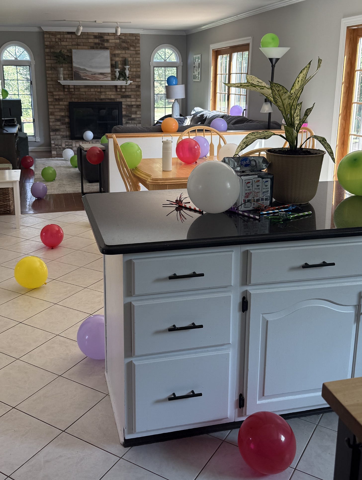 Later that same day, I came home from work to see my living room full of balloons that my husband had blown up.
